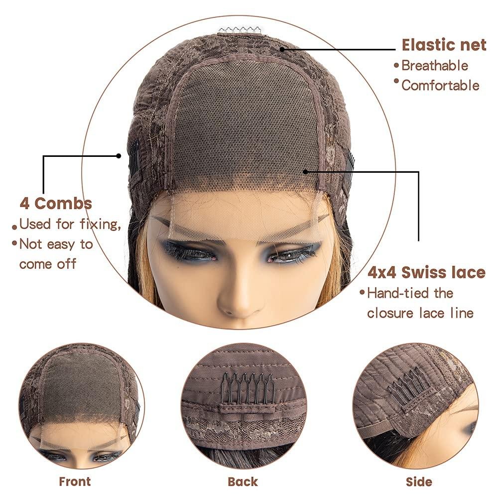 The central element of the wig is the 4×4-inch lace closure. This lace is made from a delicate and sheer material that resembles the scalp when worn. It can come in different types, such as Swiss lace or HD (high-definition) lace, known for their transparency and natural look.